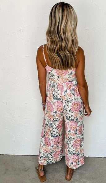White Floral Empire Waist Wide Leg Jumpsuit